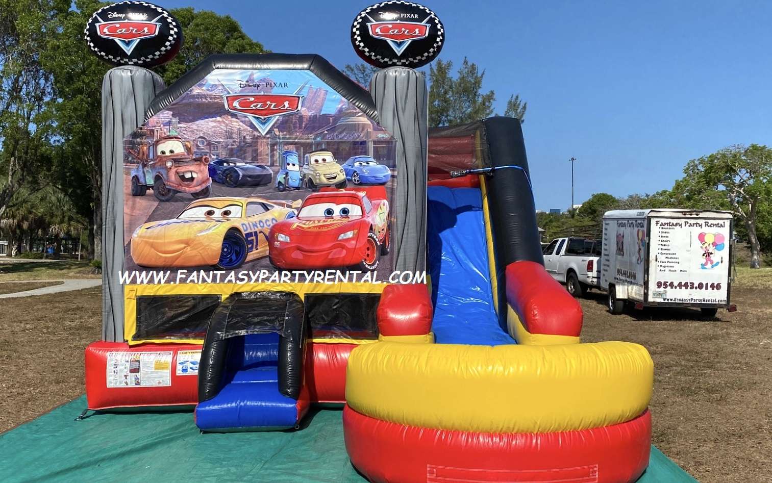 Riders will have a great time bouncing around in our Disney Pixar Cars Combo 6 in 1 Bounce House. With Luigi and Guido themed pop-up. The Disney Pixar Cars Combo 6 in 1 features fully licensed digital artwork, incorporates premium materials, and offers action-packed awesomeness suitable for all occasions.