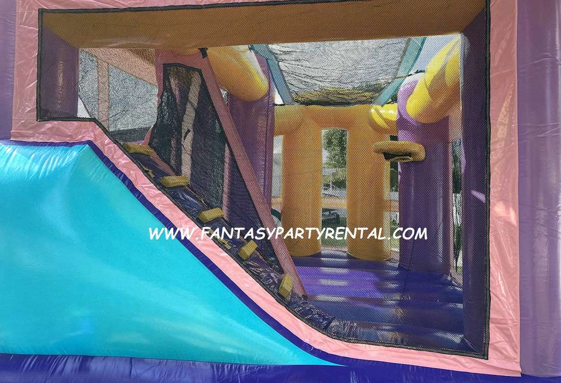 The 360-degree mesh sides of the Combo bounce house allow parents and spectators to clearly see the fun inside. The bounce house also features lite n strong™ fire-resistant vinyl, ensuring safety.