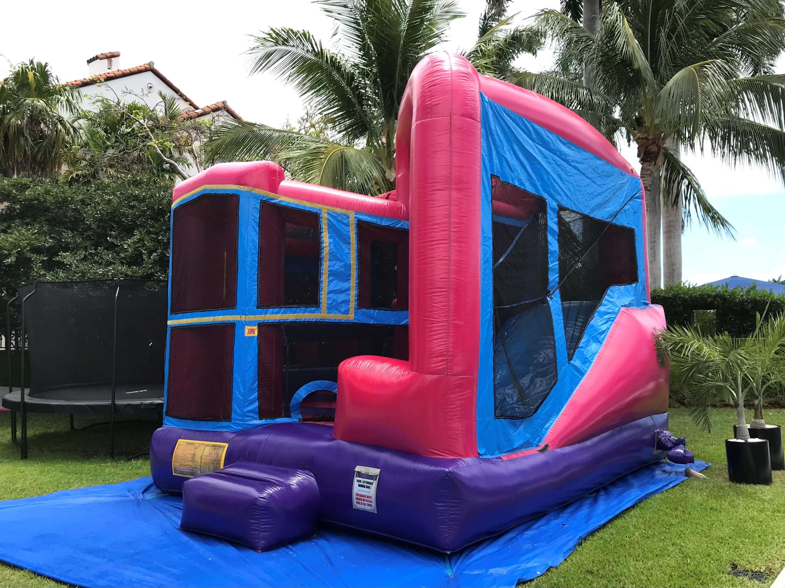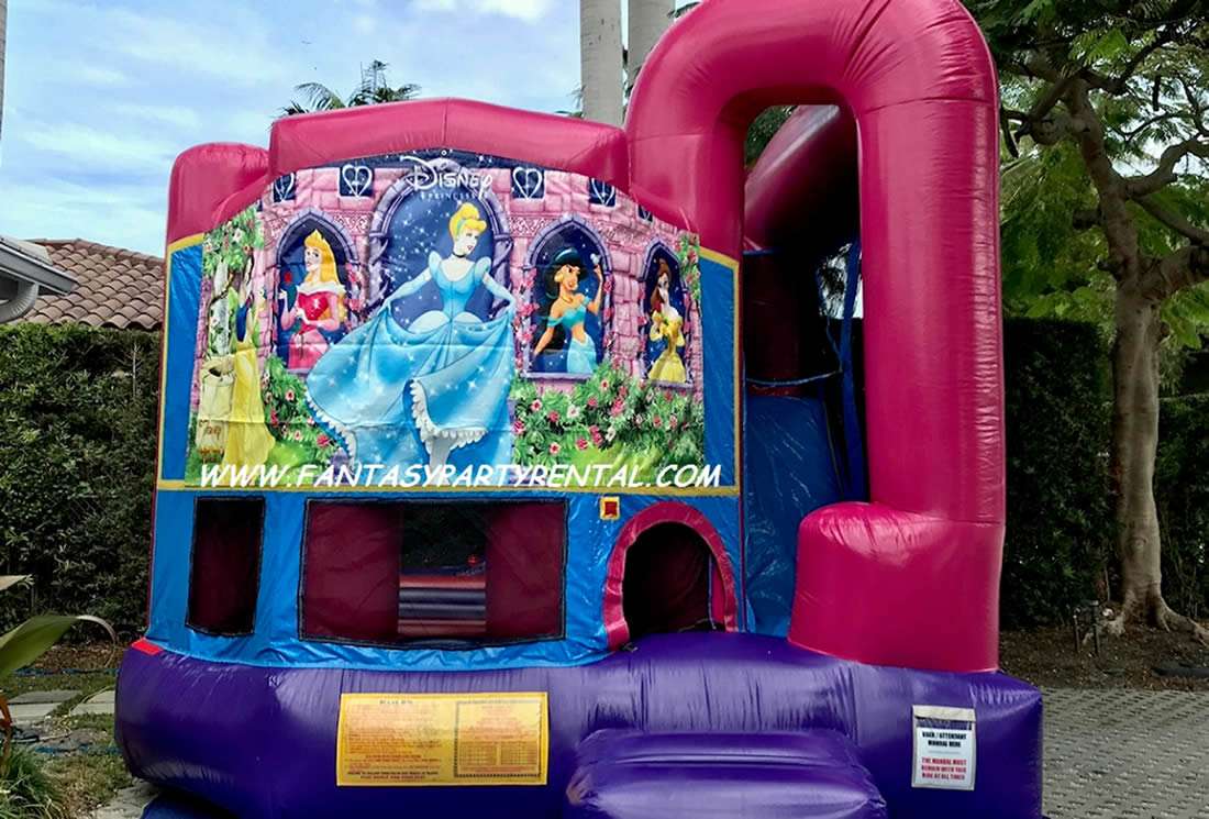 The Dream Princess Backyard Combo 4 in 1 is So Much Fun. It features a jumping area, basketball hoop, climbing area, dry slide.