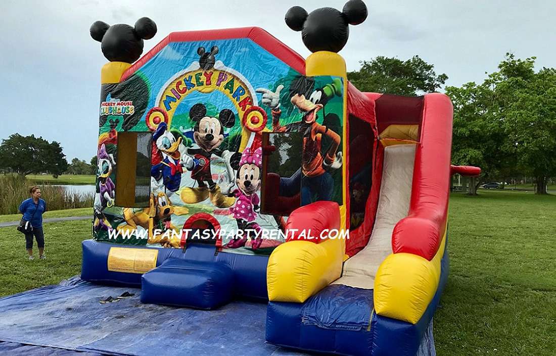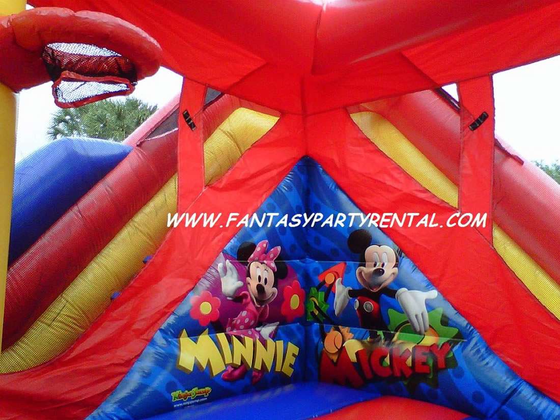 The Bounce house features a big bouncing area, 2 basketball hoops, pop up and side obstacles, climbing