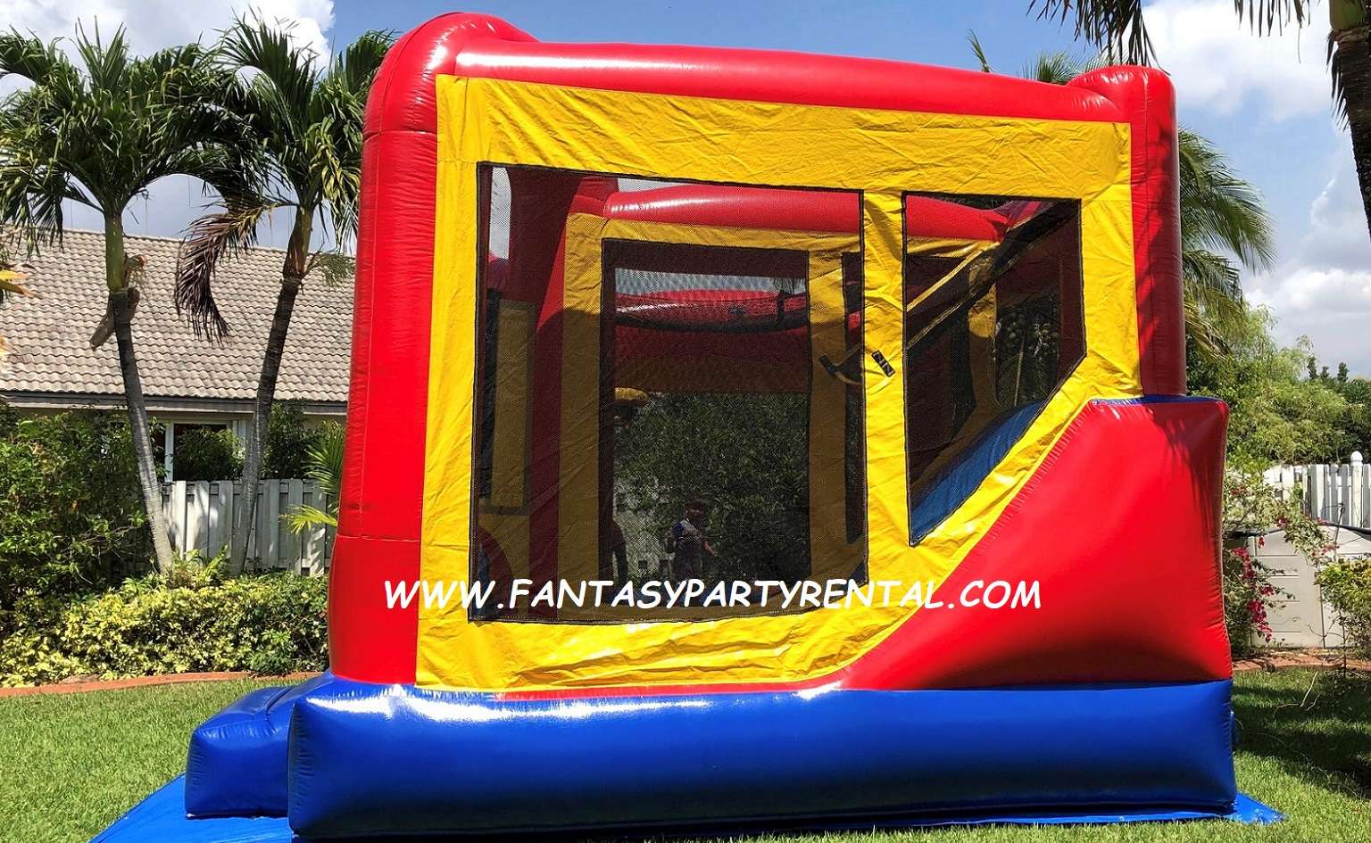 Parents and spectators see the fun inside the moonwalk through 360-degree mesh sides, and the Ninja Turtle Backyard bounce house’s lite n strong™ fire-resistant vinyl ensures safety.