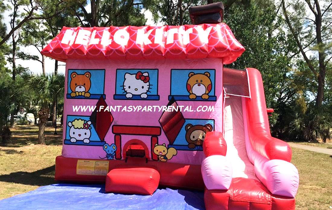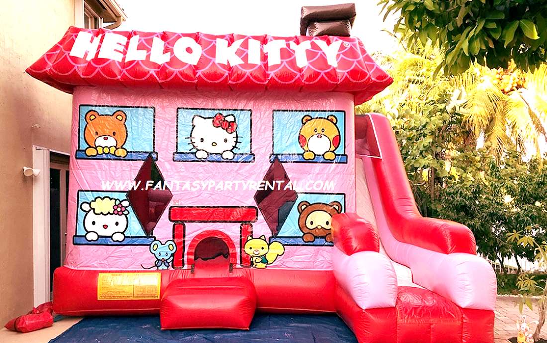 Hello Kitty full face Combo 7 in 1 (bounce, pop up and side obstacles, 2 basketball hoops, climbing area and dry slide).