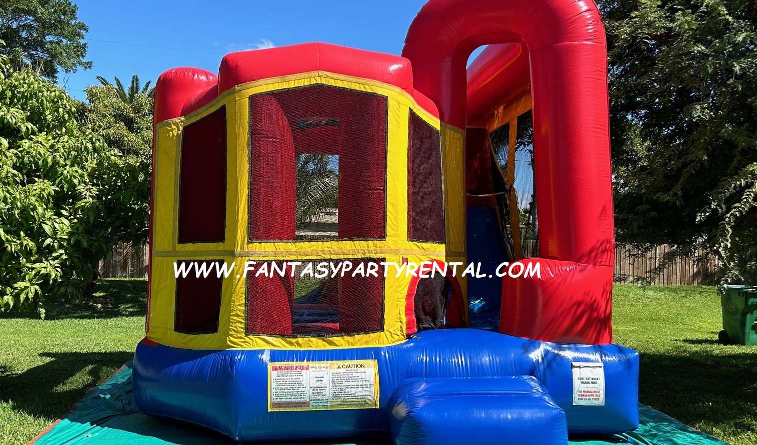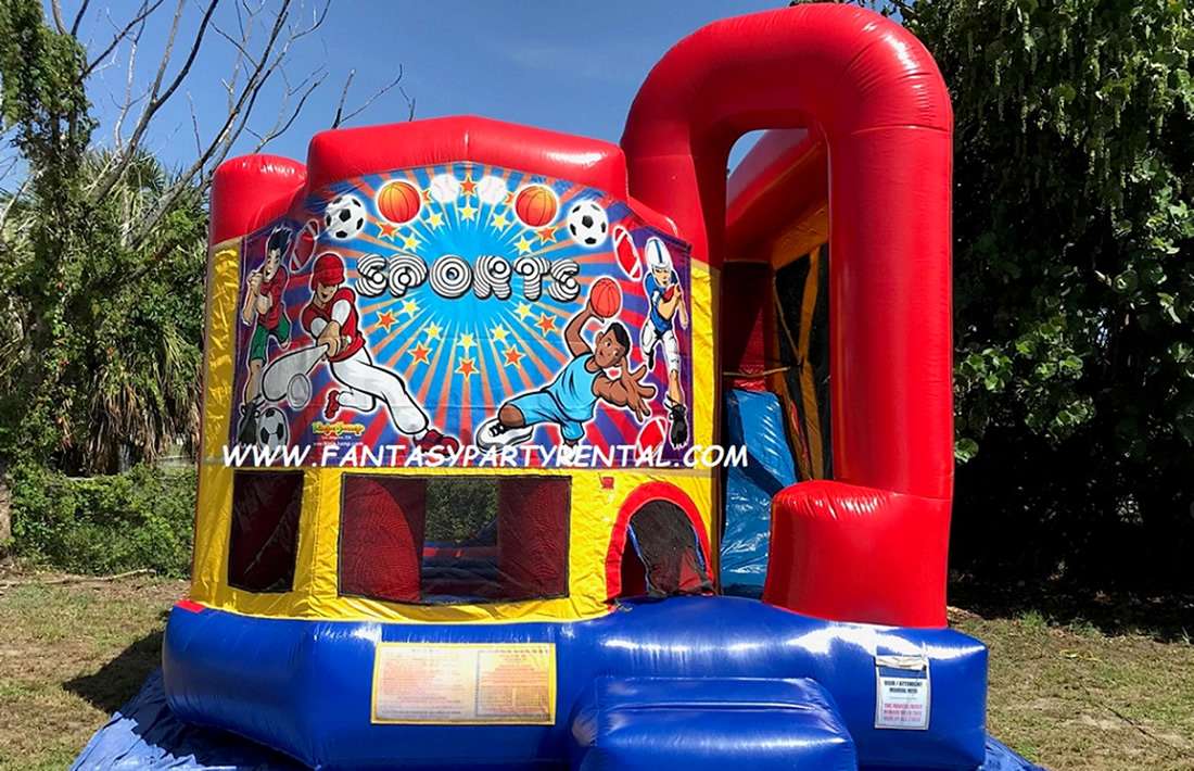 The Sports Backyard Combo 4 in 1 is So Much Fun. It features a jumping area, basketball hoop, Climbing area, dry slide.